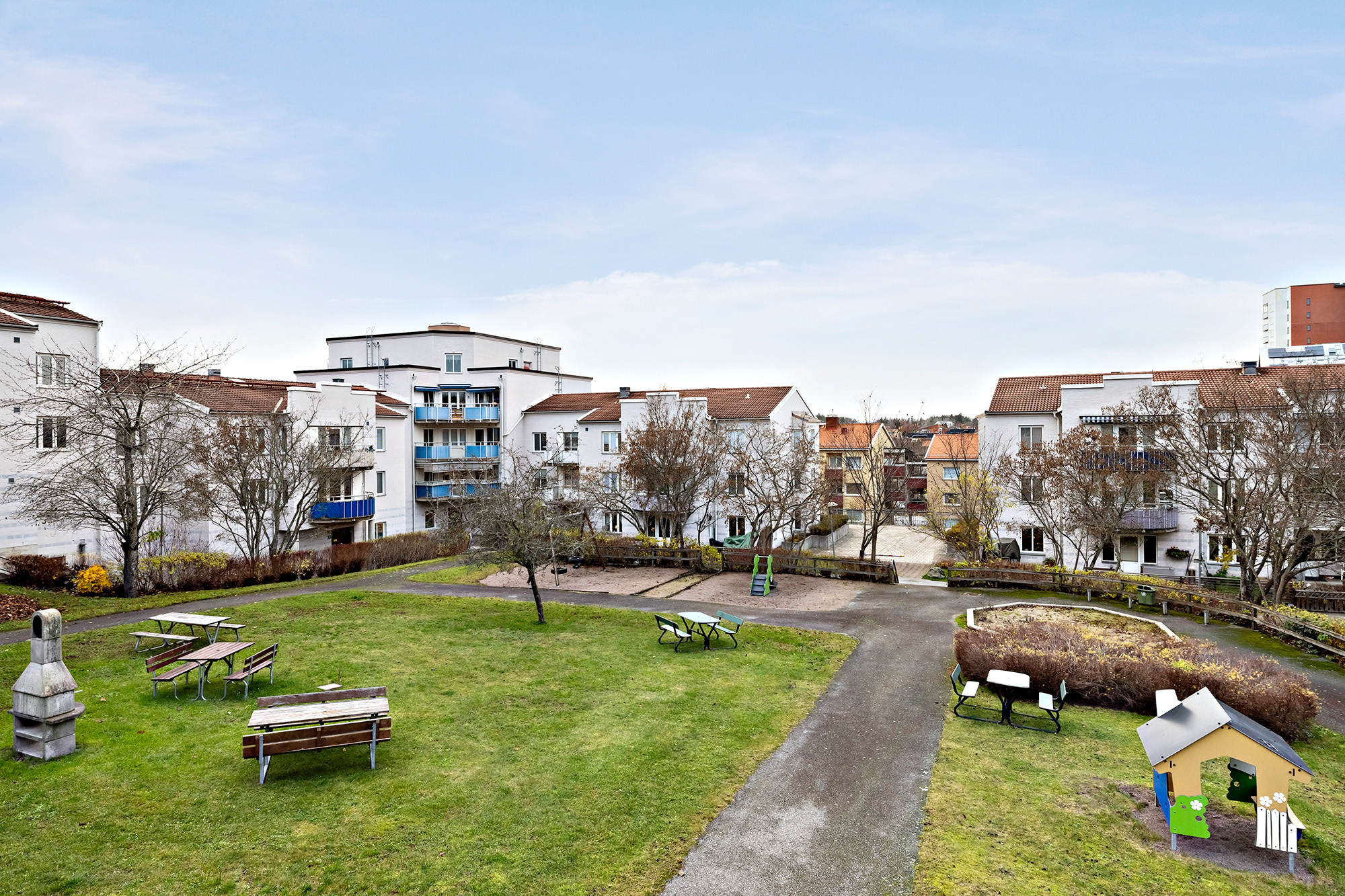 På föreningens gårdar finns tre lekplatser och grillplatser med bord och bänkar.