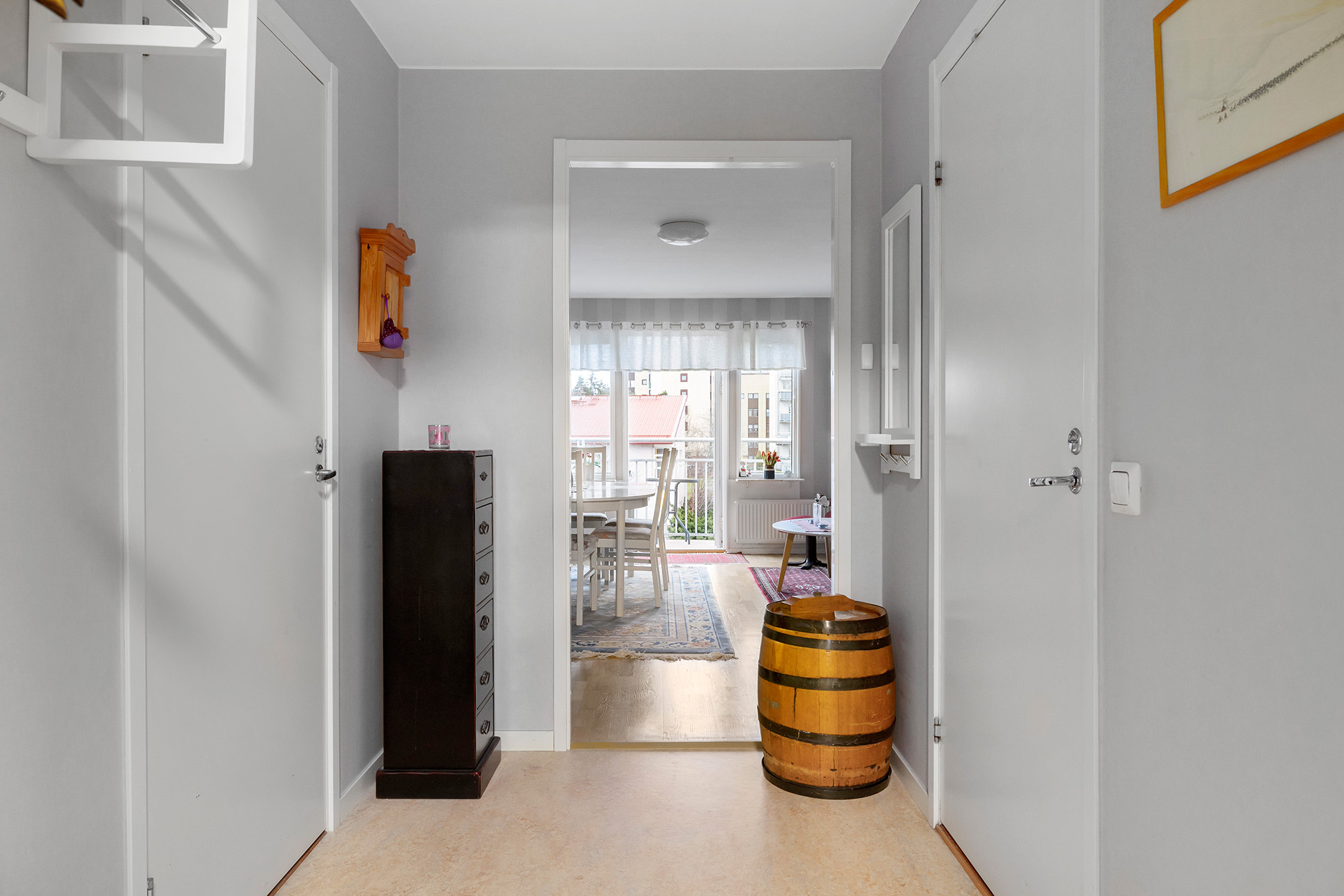 Cykel- och barnvagnsrum finns i entréplanen i portarna 11A, 16B, 17A, 28, 30 och 38.